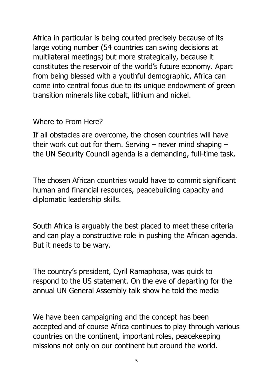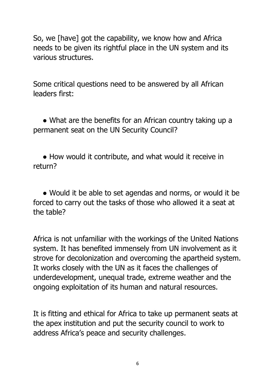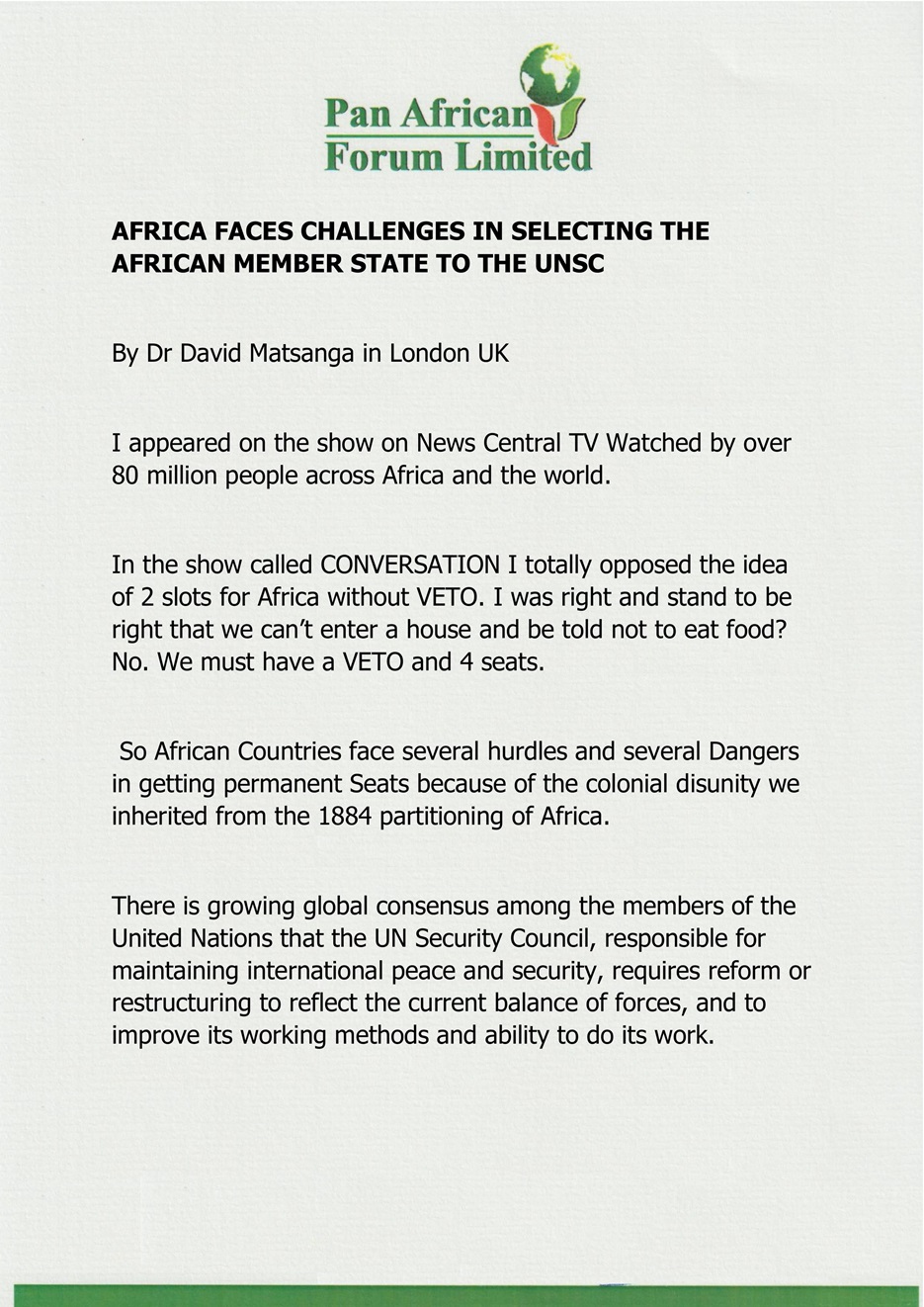 2909AFRICA FACES CHALLENGES IN SELECTING THE AFRICAN MEMBER STATE TO THE UNSC