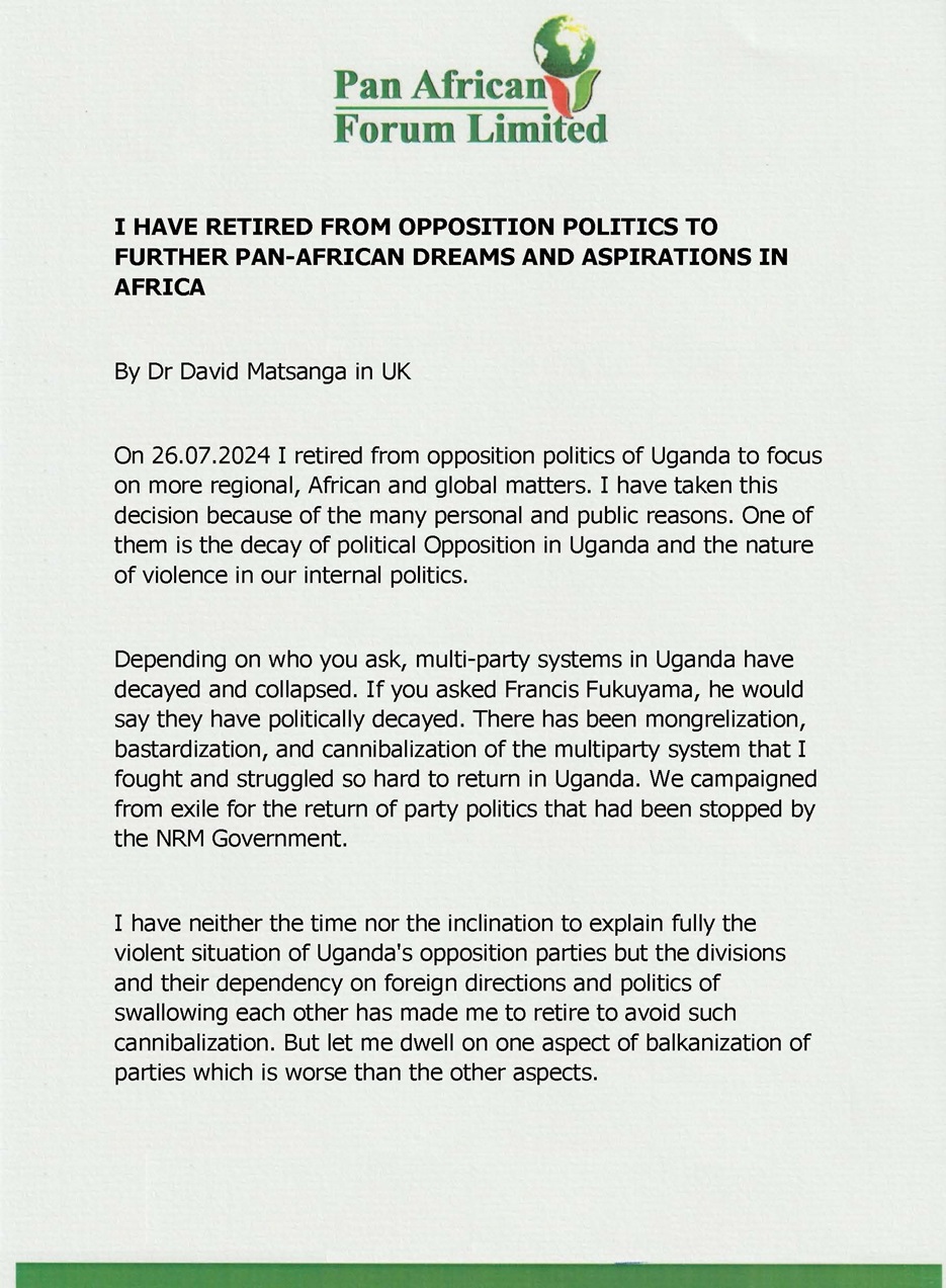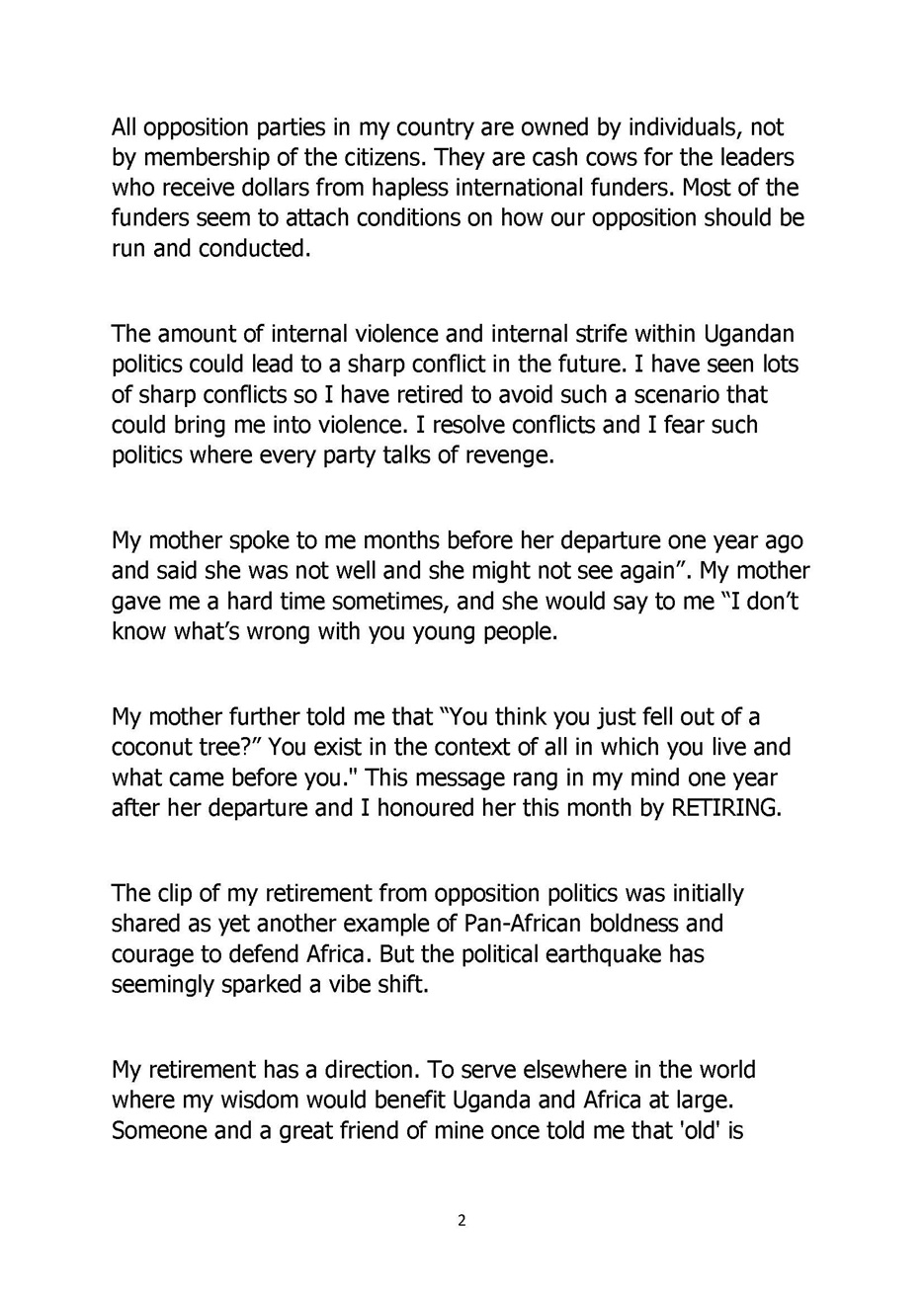 2707I HAVE RETIRED FROM OPPOSITION POLITICS TO FURTHER PAN-AFRICAN DREAMS AND ASPIRATIONS IN AFRICA