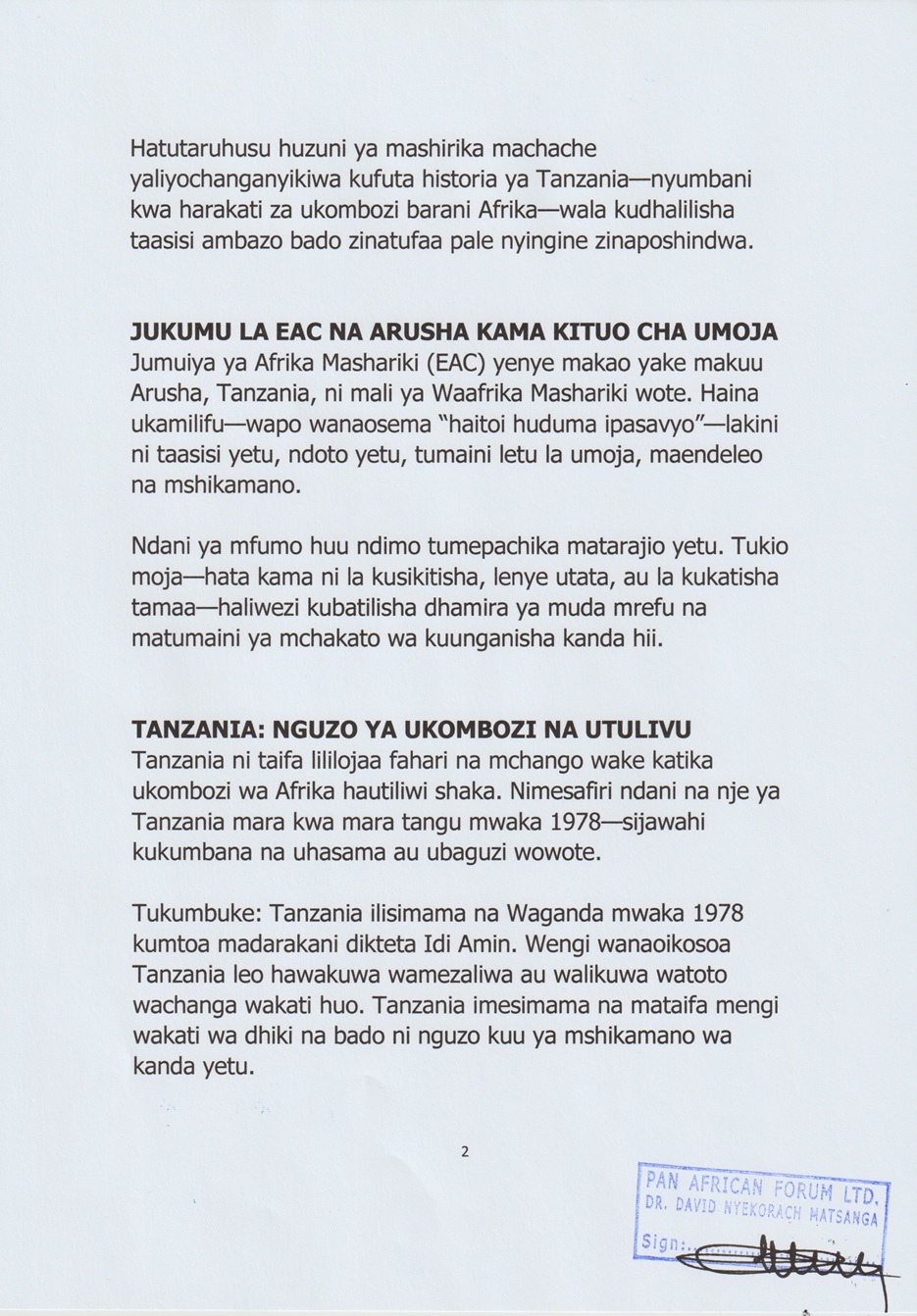 2405KWA UTETEZI WA TANZANIA NA UMOJA WA JUMUIYA YA AFRIKA MASHARIKI (EAC) Donate to Dr. DAVID NYEKORACH MATSANGA BELOW https://www.paypal.com/donate/?hosted_button_id=YW9RS83N8G7EL