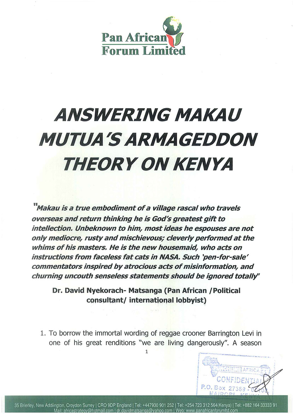 0310ANSWERING MAKAU MUTUA'S ARMAGEDDON THEORY ON KENYA