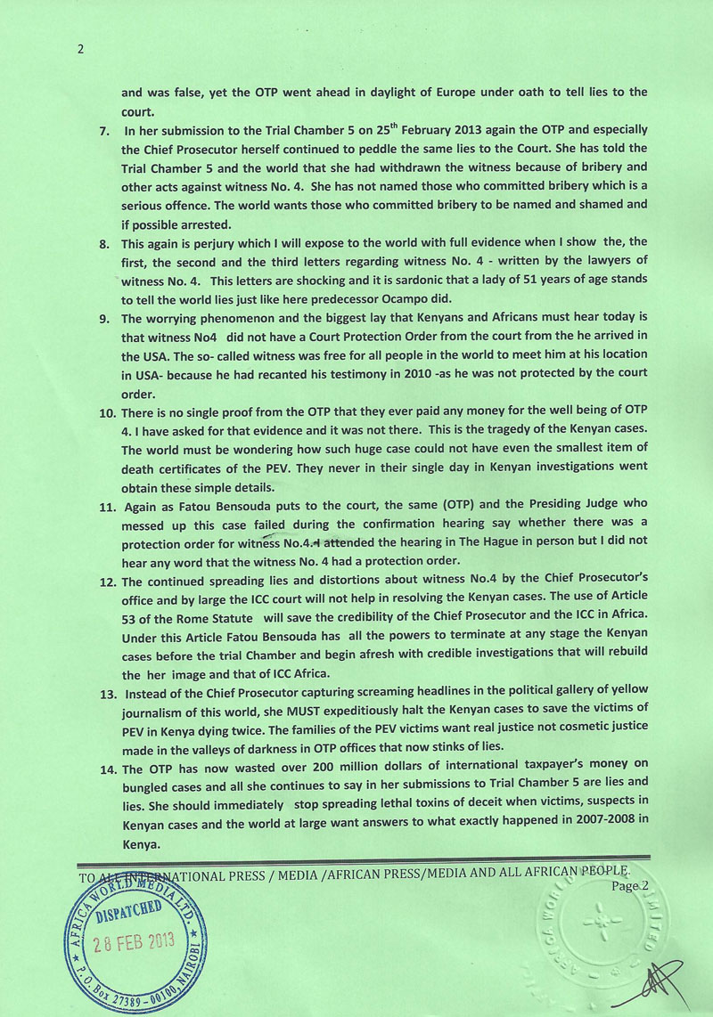0103PRESS STATEMENT: NOW THE CASE OF PERJURY IS PROVED Dr. David Nyekorach – Matsanga. Chairman /CEO Pan African Forum Ltd & Africa world Media Ltd +44(0)7930901252 +254(0)723312564 Surrey England africastrategy@hotmail.com dr.davidmatsanga@yahoo.com