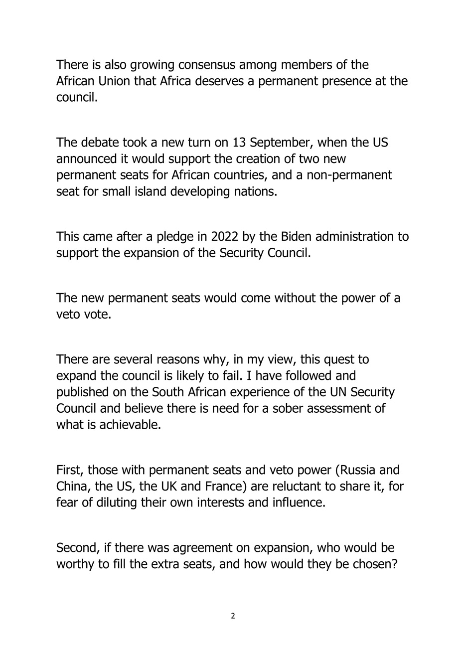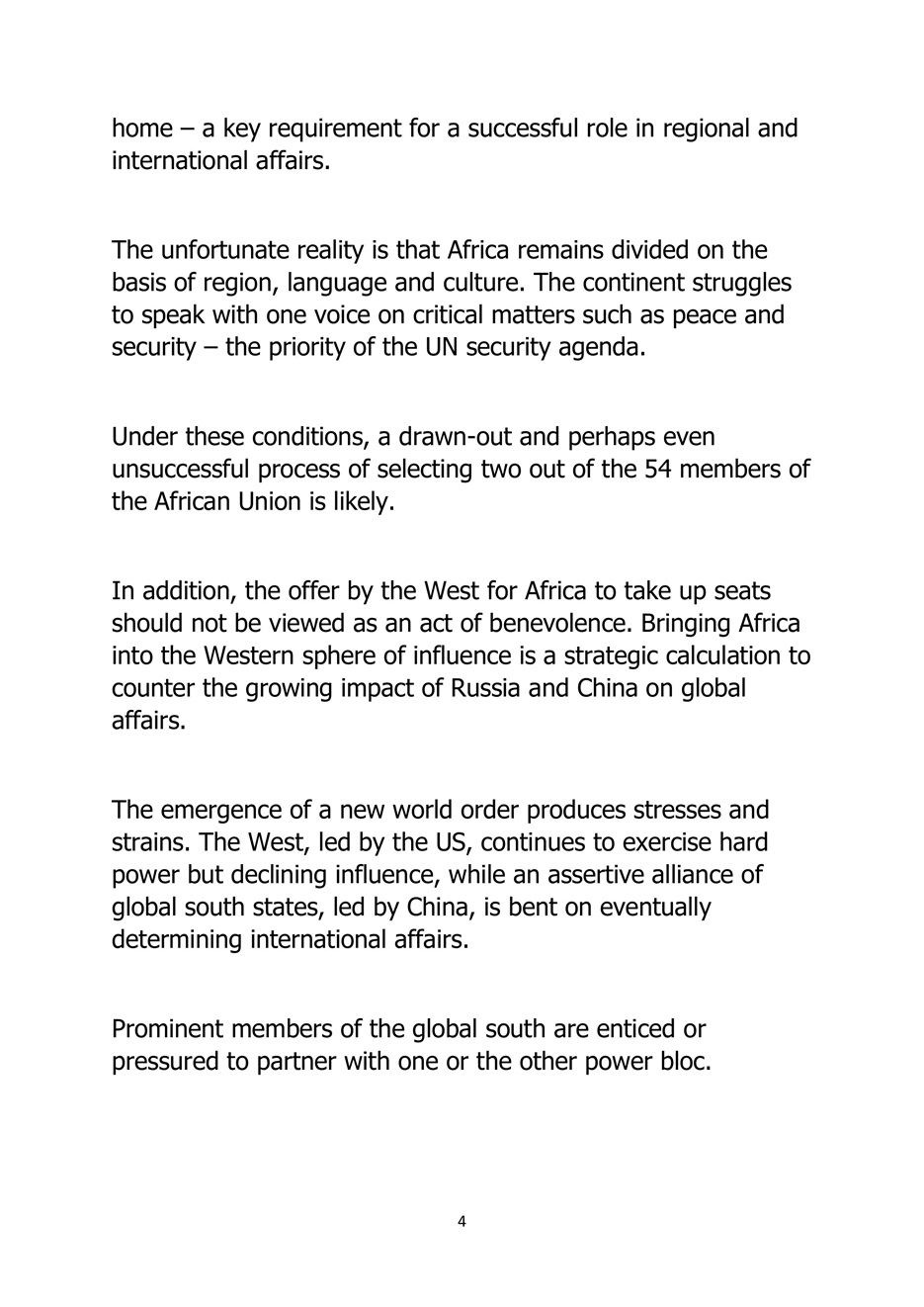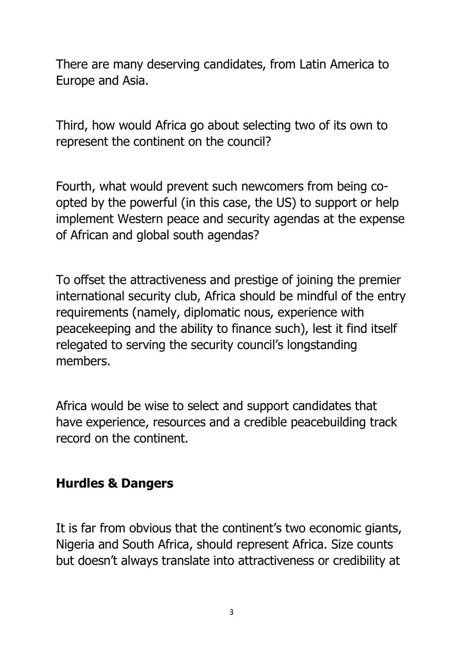 2909AFRICA FACES CHALLENGES IN SELECTING THE AFRICAN MEMBER STATE TO THE UNSC