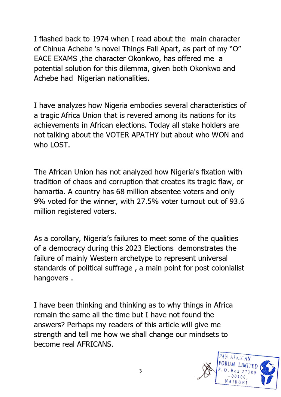 0303CHINUA ACHEBE’S TRAGEDY OF AFRICA HAPPENED AND THINGS FELL APART