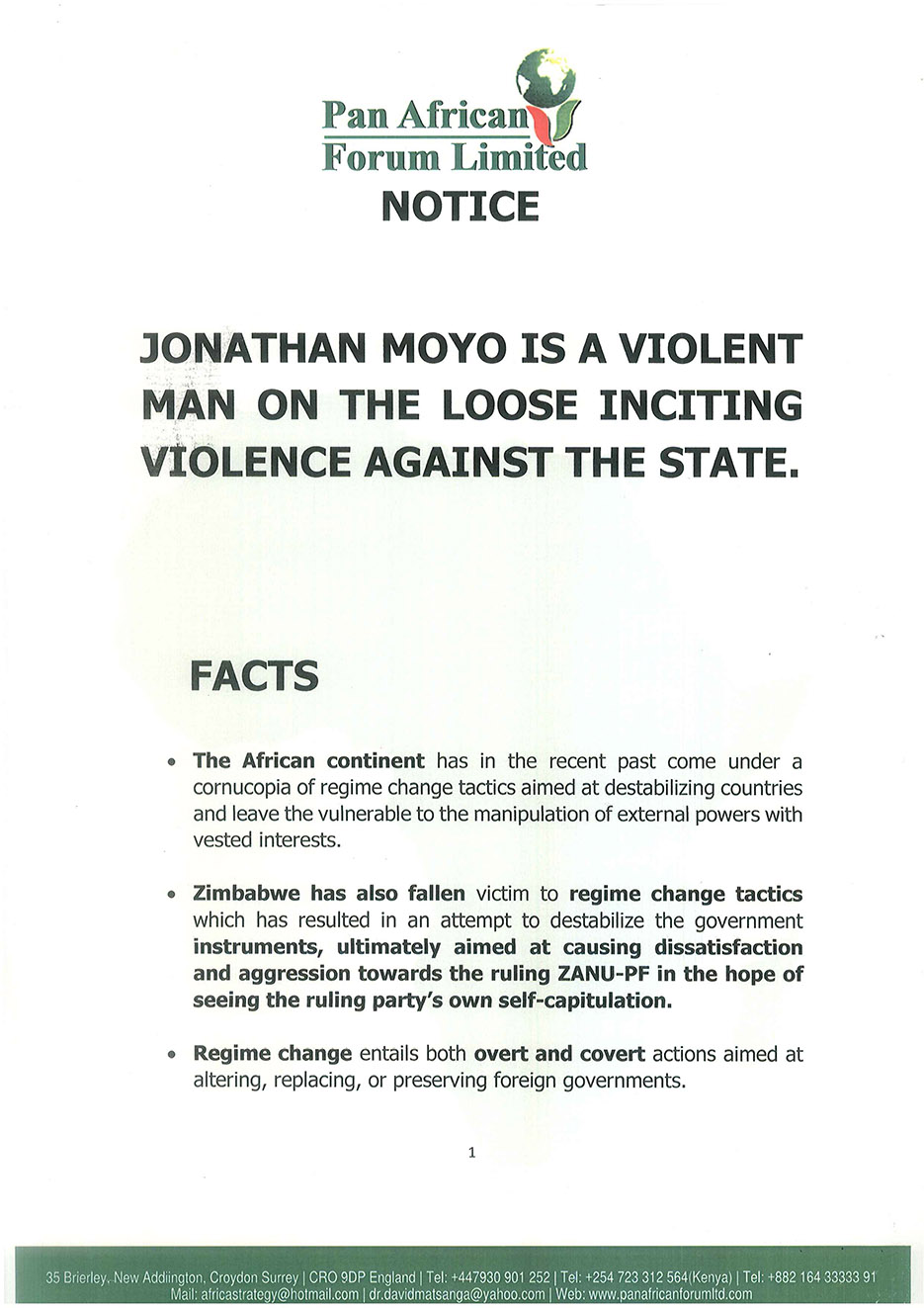 1807JONATHAN MOYO IS A VIOLENT MAN ON THE LOOSE INCITING VIOLENCE AGAINST THE STATE