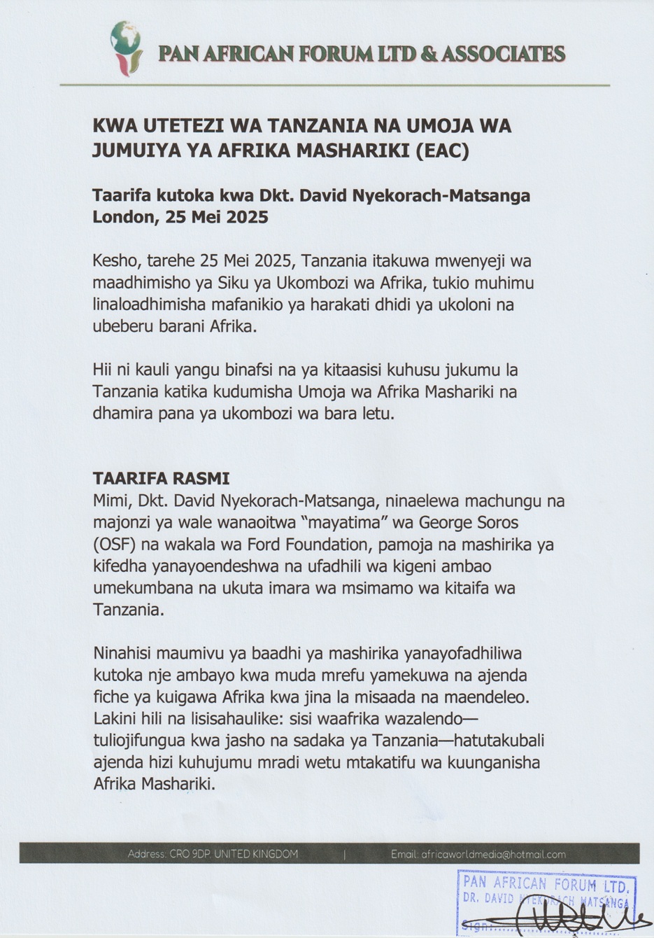 2405KWA UTETEZI WA TANZANIA NA UMOJA WA JUMUIYA YA AFRIKA MASHARIKI (EAC) Donate to Dr. DAVID NYEKORACH MATSANGA BELOW https://www.paypal.com/donate/?hosted_button_id=YW9RS83N8G7EL