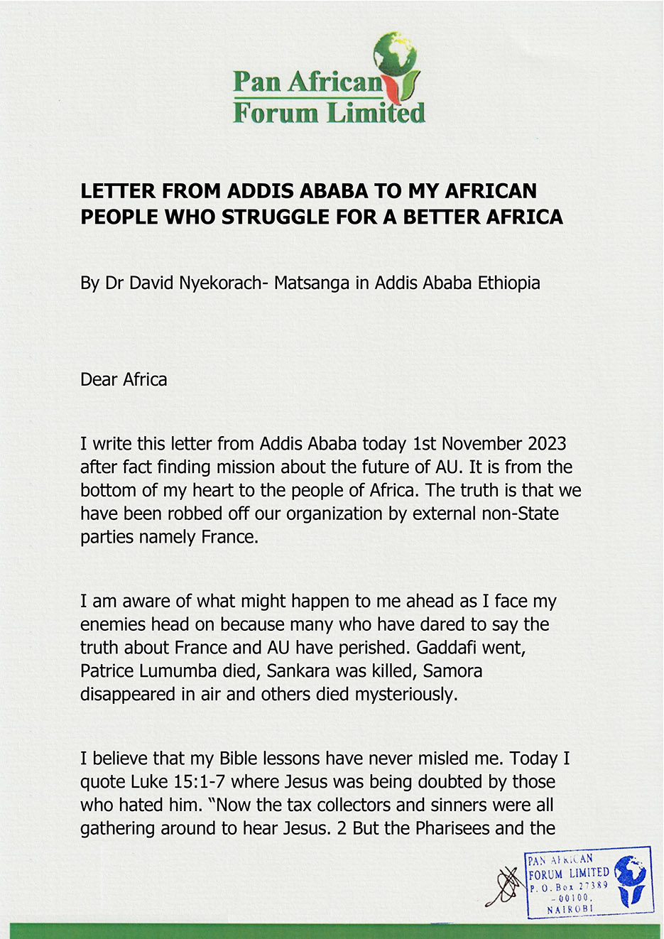 0111LETTER FROM ADDIS ABABA TO MY AFRICAN PEOPLE WHO STRUGGLE FOR A BETTER AFRICA