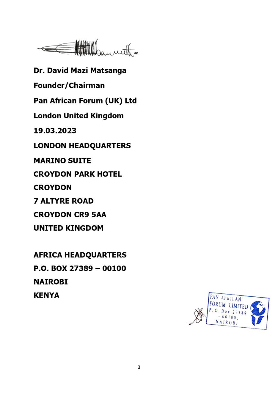 1303STATEMENT - MY NOTE TO THE ENTIRE AFRICA