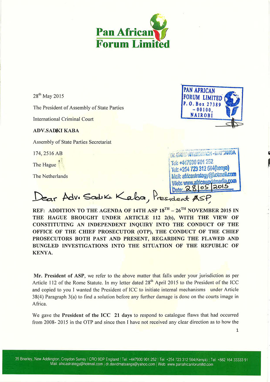 I remain, Yours truly,Dr. David Nyekorach- Matsanga. Follow Me On: Twitter: https://twitter.com/MatsangaDr |