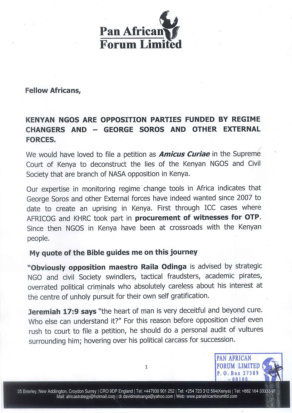 1808KENYAN NGOS ARE OPPOSITION PARTIES FUNDED BY REGIME CHANGERS AND - GEORGE SOROS AND OTHER EXTERNAL FORCES