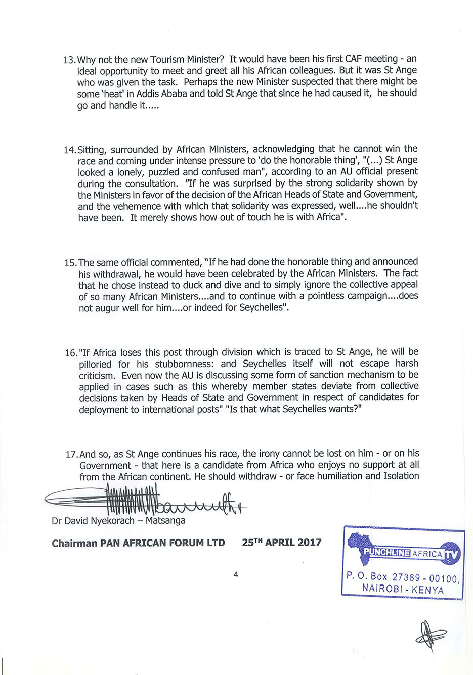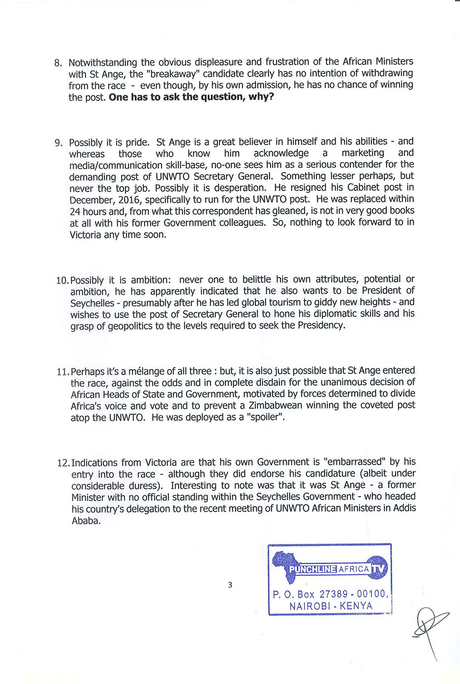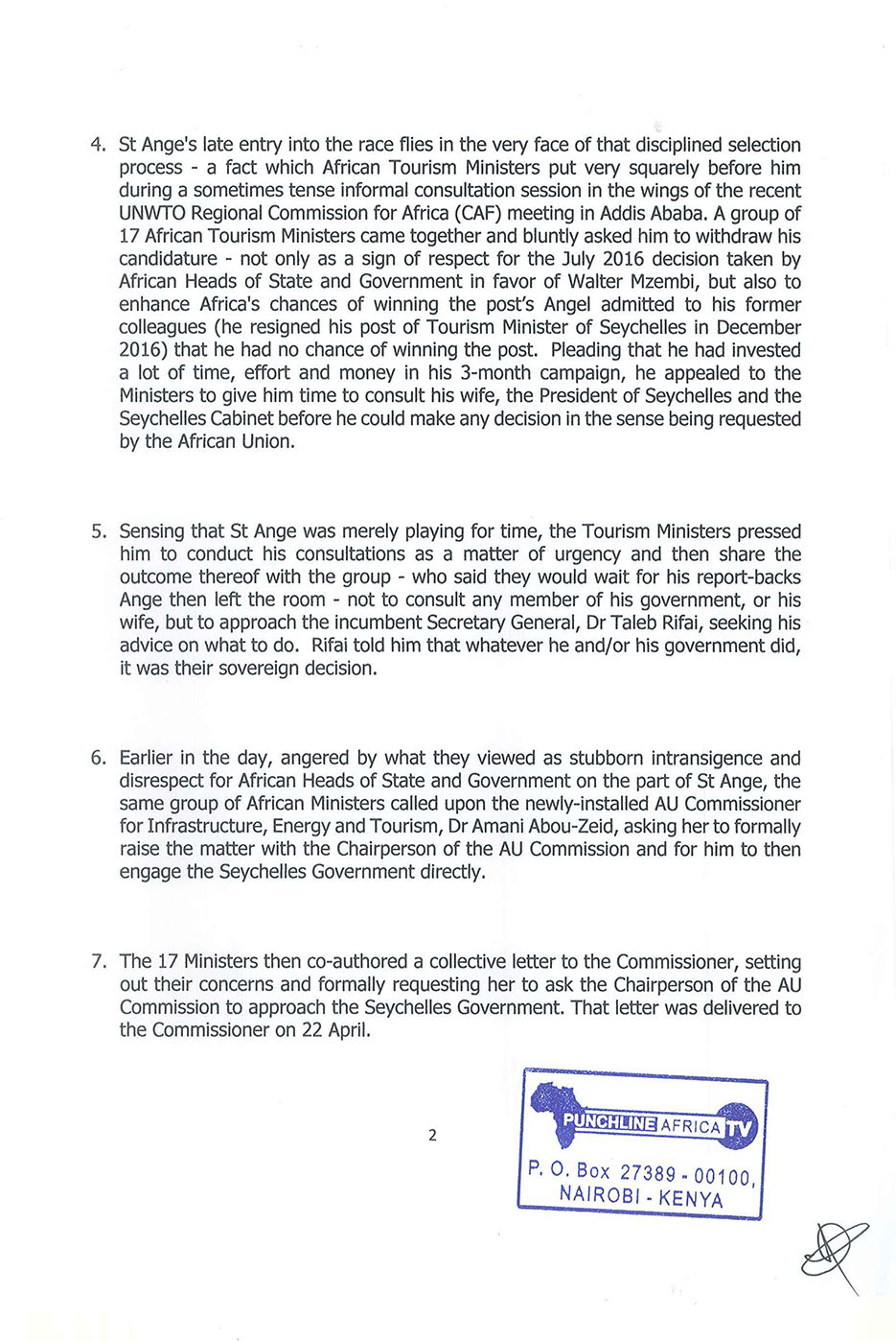 2601ALAIN ST ANGE OF SEYCHELLES PAID TO DIVIDE AU POSITION FOR THE POST OF SECRETARY GENERAL OF UNWTO