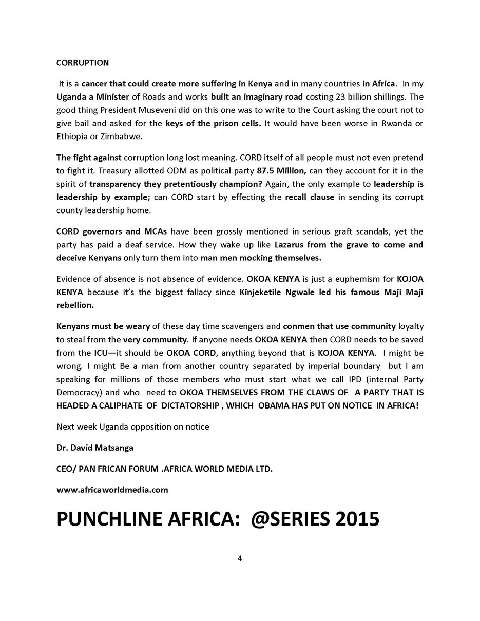I remain, Yours truly,Dr. David Nyekorach- Matsanga. Follow Me On: Twitter: https://twitter.com/MatsangaDr |